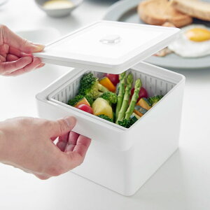 野菜を洗って水を切り、冷蔵庫にそのまま保存できます。 ザル付きなので、落ちた水分に触れるのを防ぎ食材の鮮度を守ってくれます。 バルブをワンプッシュして簡単密閉。 パッキン付きの蓋なので水漏れやにおいを防ぎ、食品を乾燥からも守ってくれます。