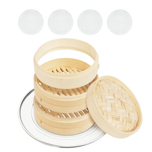 【内容量】 本体2個+蓋1個+蒸し器専用クッキングシート20枚 【様々な蒸し料理に最適】肉まんやシュウマイなどの中華料理や蒸し野菜などの様々な料理に使える竹セイロの蓋1個と本体2個のセットです。 【蒸してヘルシー】蒸すと素材の