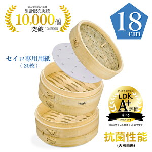 お勧めポイント本格蒸し料理が楽しめる「一式揃ったせいろ初心者セット」です♪ 「せいろ」は、天然竹素材のぬくもりが魅力の昔ながらの蒸し器です。 食材をせいろに載せ、蓋をして湯気で蒸すだけで、誰でも手軽にヘルシーで美味しい