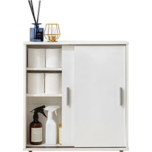 スタイル:モダン◆商品名:萩原(Hagihara) トイレラック 収納 スリム 洗面所収納 扉 棚板 取っ手 付き 引き戸 薄型 コンパクト 幅59×奥行19.5×高さ61 ホワイト RTR-1138...