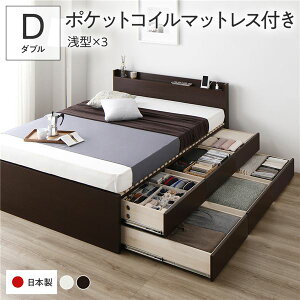 商品詳細お客様組立 国産 ワイド深型引き出しチェストベッド 棚・コンセント付 Lage ラージュ 薄型スタンダードポケットコイルマットレス付き セミダブルベッドフレーム【サイズ】セミダブル:幅120×...