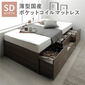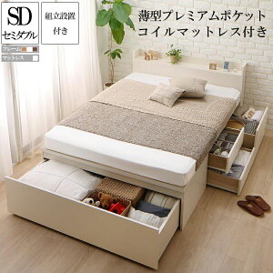 商品詳細組立設置付 国産 ワイド深型引き出しチェストベッド 棚・コンセント付 Lage ラージュ 薄型プレミアムポケットコイルマットレス付き セミダブルベッドフレーム【サイズ】セミダブル:幅120×奥...