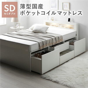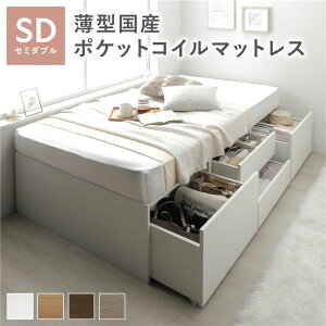 組立設置付き ベッド チェストベッド 薄型スタンダードボンネルコイルマットレス ハイタイプ 引き出しなし セミダブル 送料無料 マットレス付き マットレスセット ★ハイタイプ 驚きの...