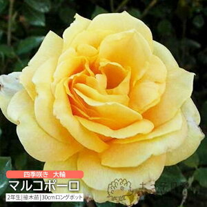 |商品情報 褪色の少ない鮮やかな黄色で、香りがとても良い「マルコポーロ」は、黄金郷を記したマルコ・ポーロをイメージしたバラです。半剣弁高芯咲きで花径10cm、花弁数28枚、樹性が強く、丈夫な株に育ちます。開花後に切り戻すと、ま