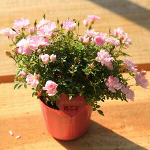 花は小さくてかわいらしいピンクのロゼット咲きで、株一面を覆ってしまうほど、いっぱいに咲かせます。 耐病性もあり、初心者向きの育てやすい品種です。 花径:3cm 樹高:1.5〜2.0m 花季:二季咲き その他:微香<br
