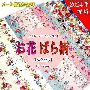 福袋 お花 バラ柄 15枚セット ツイル シーチング 生地 カットクロス お試しセット 送料無料 花 薔薇 バラ 花柄 手芸 手作り