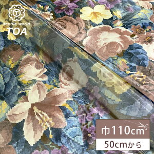 オーガンジープリント ハイビスカスや薔薇のクロスステッチ風デザインがエレガントなオーガンジー。 衣装製作、卒業制作、ダンス衣装、ドレス、小物、ウェディング、インテリアなどに◎ 普段使いからイベントなどでも活躍してくれる綺
