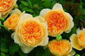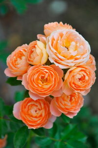 Lady of Shalott(Ausnyson) 花色:オレンジレッド〜サーモンピンク 香り★★☆ 四季咲き性 特異なほどに花付きの良い品種で、つぶのそろった花が素晴らしい葉の上に広がります。全体の印象は、輝くような暖かい銅色のシ...