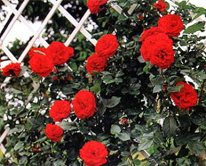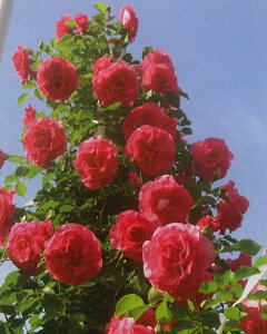 Ulmer Munster 花色:赤色 香り★☆☆ 四季咲き 花径10cm 花形:丸弁のカップ咲き 丈夫で耐病性に優れ、寒冷地にも適しています。 赤系のつるバラは、一本あると華やかな空間を作ります。 花名はドイツの都市ウルムにある大...