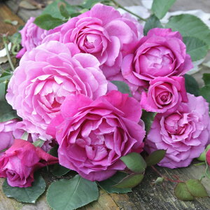 Prologue 花色:ライラック 香り:★☆☆ 花期:四季咲き 花径:5〜6cm 花弁数:30〜40枚 花形:カップ咲〜平咲 樹高:1.2m〜1.5m、半横張性 ロマンティックな雰囲気のあるライラック色の花が、花束のように房状にな...