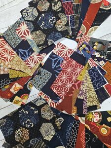 藍染の魅力をちりめん生地で再現してみました。ちりめんとしては、かなり珍しい色合いですね。桜、菊、梅、紅葉、萩などの花や植物が描かれています。そこに、鹿の子の麻の葉柄が組み合わされ、和の定番といった印象に仕上がっていま