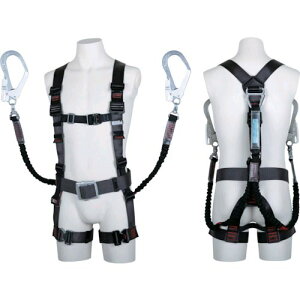色:黒 仕様:ハーネス用2股ノビロンランヤード(2丁掛け)のみ 人体側:ショックアブソーバ、カラビナ(FS-21KS) ノビロンサイズ:幅32×長さ(収縮時1200~1300mm、伸長時1700mm)×2本 構造物側フック:FS-93...