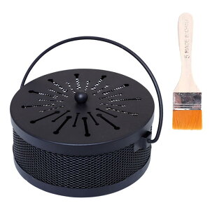防蚊 蚊取線香入れ 蚊遣り 蚊取り線香 スチール製 蚊取りポット 蚊取り線香ホルダー 吊り下げ ブロック 虫よけ 蚊取り器 持ち運び便利 刺さずに使える 屋外 屋内 刷毛付き (E) 鉄製でどっしりした重さがあり...