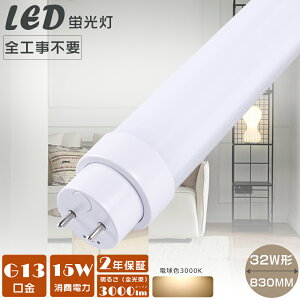 商品名 LED蛍光灯 32W形(工事不要タイプ) サイズ(約) φ30mm×L830mm 重量 約0.25kg 消費電力 15W 定格光束 3000lm 色温度 電球色3000K 口金 G13 照射角度...