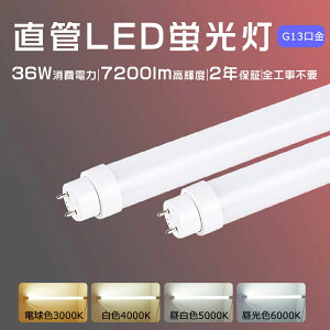 製品仕様 ■製品名 LED蛍光灯 40W形(工事不要タイプ) ■消費電力 36W ■色温度 電球色3000K・白色4000K・昼白色5000K・昼光色6000K ■口金 G13 ■本体サイズ 約120*3cm...