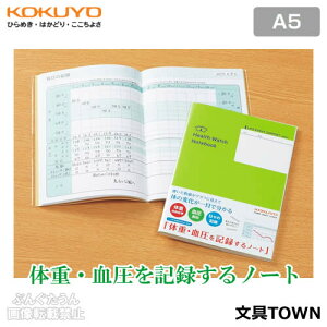 コクヨ0120-201-594【商品説明】●日々記録型ノート ●サイズ/A5 ●仕様/体重・血圧を記録するノート ●枚数/32枚(64ページ) ●中紙/上質紙 ●製本様式/糸かがりとじ ●中紙/ECF...