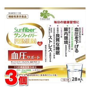 名 称くらしリズム サンファイバープレミアム 血圧サポート内容量151.2g(5.4g×28本) ×3個原材料名グアーガム分解物(インド製造)、ギャバ含有乳酸菌発酵エキス/L-テアニン成分(栄養成分)...