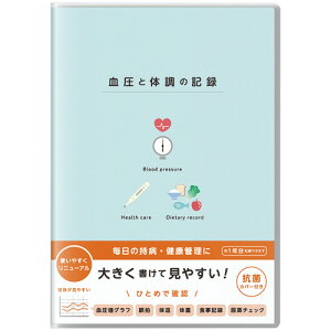 ●大きく書けて見やすい。色はブルーです。●推移が見やすい血圧値グラフ。●まとめて記録して体調管理(脈拍・体温・体重・食事・服薬・メモ)。●抗菌カバー付き。●寸法/W148×H210mm●色/ブルー●サイズ/A5●枚数/112ページ(385日