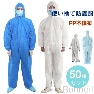 50枚入り 防護服 保護服 使い捨て フード付 つなぎ 不織布 セット 作業服 作業着 飛沫 感染症対策 介護施設 清掃 大き