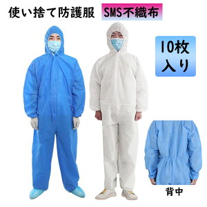 防護服 使い捨て 不織布 フード付つなぎタイプ ワークウエア つ