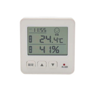 【商品解説】測定した温度と湿度が労働安全衛生法の事務所衛生基準規則が定める努力目標(温度:17〜28度、湿度:40〜70%)を満たしている場合を「快適」、逸脱している場合を「不快」と判断して、顔表示・ランプ・ブザーでお知らせすると