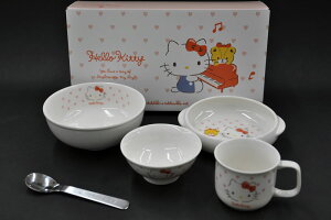 「ハローキティ」ピンクハートの食器が子供食器セットになりました!! 小さな女の子から圧倒的な人気を誇るハローキティ☆ハート柄にキティとタイニーチャムが可愛いデザインです。食器を取り出した後もおもちゃ箱などにアフターユー