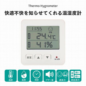 商品説明★ お部屋の温度・湿度がひと目で分かるデジタル温湿度計です。★ 測定した温度と湿度が労働安全衛生法の事務所衛生基準規則が定める努力目標(温度: 17〜28度、湿度: 40〜70%)を満たしている場合を「快適」、逸脱している場合を「