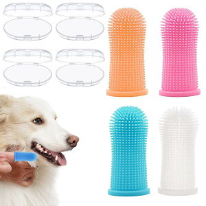【製品仕様】4つのブラシと4つのPPボックスを含むこのセットは,サイズ:長さ5* 幅2.1cm,色:ピンク、ブルー、ホワイト、イエロー。【素材】100%シリコーン素材を使用しており、無毒物でペットの歯衛生を全面的にサポートします。歯の上