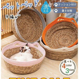 かわいい猫型デザインと手編みの温かみ:ふんわり猫耳が愛らしい猫シルエットのデザイン。職人が一つひとつ丁寧に手編みで仕上げた、温もりとこだわりが感じられる猫用ベッド。リビングや寝室のナチュラルインテリアとしても映えます。 爪とぎ&ベッド...