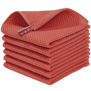 ふきん 6枚入り キッチンタオル 布巾 強力吸水 紐付き キッチンクロス 雑巾 手拭き用ハンドタオル 防臭 北欧 衛生 抗菌 洗面台拭きタオル ワッフル調 レッド 33*33cmブランド色レッドモデル商品説明【商品概要】【超強吸水】綿...