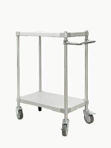 アルミニウムと亜鉛の強みを兼ね合わせ、耐熱・耐食・長期耐久性に優れたガルバリウム鋼板製 Φ100mmの業務用キャスターを採用し、重量物を載せての走行も安心