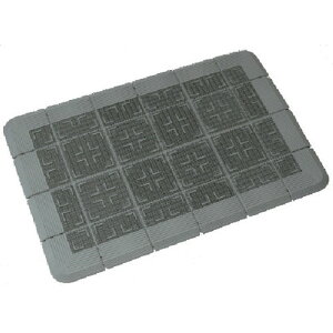 ●サイズ 750×900mm/厚さ約11mm ●重量 約4.2kg ●材質 表面・裏面:塩化ビニール ふち:塩化ビニール ●規格色 灰 ●抗菌・防カビ・防藻剤入 ●除菌液約1Lが適量です 2種類の除菌液からお選び下さい 除菌マット専...