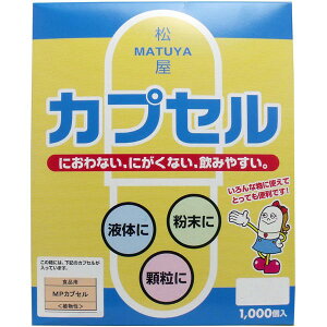 【発売元:松屋】におわない、にがくない、飲みやすい!超お徳用1000個入タイプ登場!カプセルなら、飲みにくいものも簡単に飲むことができます!●液体を飲む時●にがいもの、におうものを飲む時●粉末・顆粒を飲む時個装サイズ:196X243X...