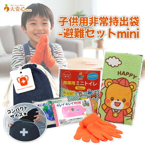 商品名子供用非常持出袋-避難セットmini寸法・重量【巾着袋】 175×260mm 【セット重量】 152gセット内容・携帯ミニトイレ ・ノンアルコールウェットティッシュ ・水に流せるティッシュ ・のびる手袋 ・タオル特徴〜ご家庭でも...