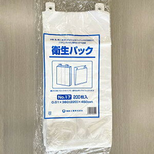 商品名 衛生パック No.14 商品コード 0344028 巾(仕上り巾)×長さ(mm) 280(170)×370mm ケース入数 4,000枚 包装 200枚ブロック袋入 形状/色/素材 ガゼット袋/半透明/HDPE メーカー 福助...