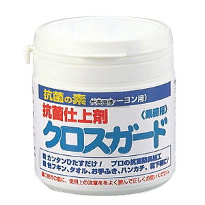 商品の特徴 抗菌仕上剤 クロスガード 150g ●標準使用量:水1Lに3g ●綿・レーヨン専用です。細菌の増殖を抑え臭いの発生を防ぎます。 ●台フキン、タオル、お手ふきなどにその効果は約10回の洗濯まで持続します。 製品仕様 ●品名情...