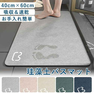 天然珪藻土で吸水性と速乾性に優れたソフトバスマット ●吸水性?速乾性?滑り止め ●自由カット?収納便利 ●冷たくない?良い踏み心地 ●防カビ?洗濯可 サイズ:約幅40x長さ60 約幅50x長さ80 約幅60