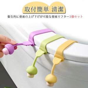 衛生的に便座の上げ下げが可能な便座リフター3個セット便座用取っ手を使用すれば、手を汚さずに便座をあげることができます。汚れたら水洗いだけできれいになり、繰り返し使用可能で経済的!柔らかいシリコン素材を使い、どんな便座や