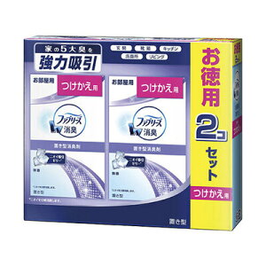 【商品説明】「家の臭い」を強力吸引!置くタイプのファブリーズの詰替用です。香りが残らない無香料タイプ【セット内容】・消臭剤(詰替用)×2※本体は付属しません【仕様】・内容量:約130g/1個・使用目安:約1.5〜2か月【JANコード】...