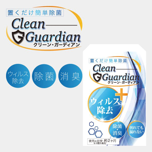 置くだけの簡単除菌「クリーンガーディアン」。場所を選ばずにどこでも空間除菌が可能。除菌と同時に消臭も行います。
