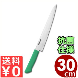 サイズ:刃渡り300mm 材質:刃…モリブデンバナジウム鋼、ハンドル…エラストマー樹脂(銀系無機抗菌剤配合)耐熱温度:115℃●本刃付け●本研刃造り