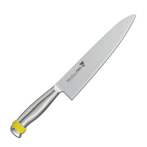 【堺實光 スタンダード 抗菌 プラ柄 ツバ付 牛刀 両刃 18cm 黄 56084】 ●サイズ:刃渡り180mm(全長305mm) ●重量:170g ●背厚:2.1mm ●材質(刃):モリブデンバナジウム鋼 ●材質(ハンドル):POM...