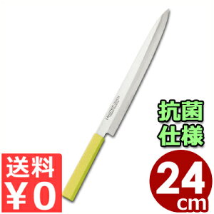 サイズ:刃渡り240mm 材質:刃…モリブデンバナジウム鋼、ハンドル…エラストマー樹脂(銀系無機抗菌剤配合)耐熱温度:115℃●本刃付け●本研刃造り