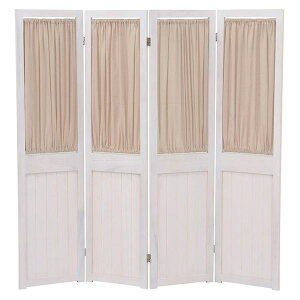【商品名】 パーテーション 衝立 4連 約幅40cm アンティークホワイト 木製 桐材 取り外し式カーテン付き 完成品 リビング ダイニング 【ジャンル・特徴】 パーテーション 衝立 パーティション スクリーン...