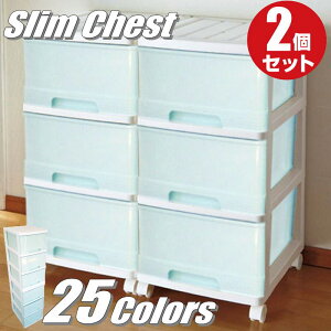 リビングやクローゼット、押入れの収納にぴったりサイズのカラフルチェストの2台セットです。 深型タイプの引き出し3段の2個組で合計6杯の引き出しですので衣類や小物などたっぷり収納できます♪ 360度回転するフリーキャスターですので