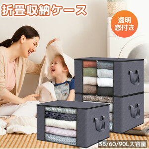 収納ボックス 折りたたみ 蓋付き ファスナー付 大容量 透明 66L 取っ手付き PVC 衣類収納ボックス 折り畳み収納ボックス 収納ケース 無臭 綿麻 ジーンズ収納 衣類 収納 防塵 防湿 通気性 ケースボックス 下着 毛布 収納B...