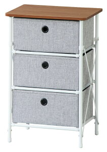 3段チェスト 組立簡単 【木製取っ手 前面部分ポリエステルボックスタイプ】 木目調天板 アジャスター付き 幅45x奥行き30x高さ77cm アイアン フレーム ホワイト 衣装ケース 引き出し 収納ボックス...