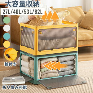 収納ボックス 前開き 折りたたみ コンテナ ボックス 衣装ケース 大容量 大型 収納ケース クリアボックス 蓋付き おもちゃ 衣類 折り畳み コンテナー プラスチック おしゃれ 組立簡単 キャスター付き...