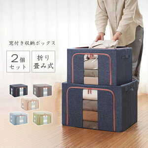 フタ付き 布 2枚入 折りたたみ 窓付き 蓋付き 前開き 積み重ね 66L 衣類 収納袋 衣装 ケース 大容量 中身が見える