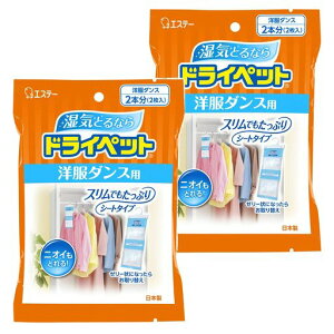2)◆商品名:【まとめ買い】ドライペット 除湿剤 シートタイプ 洋服ダンス用 2枚入×2個 衣類 湿気取り【衣類収納の湿気対策に】やく剤がゼリー状になるので、除湿効果がひとめでわかります。【消臭も】湿気をとり...